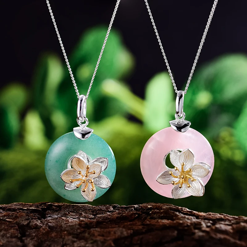 This delicate lotus flower pendant is crafted from real 925 sterling silver with an 18K gold-plated floral design, celebrating the beauty of nature. Featuring a natural aventurine gemstone, available in green and pink, it brings a touch of serenity and elegance to any look. Lightweight at 4.8g, this finely detailed piece is perfect for everyday wear or special occasions. A symbol of growth and harmony, this pendant makes a thoughtful gift for nature lovers and jewelry enthusiasts alike.